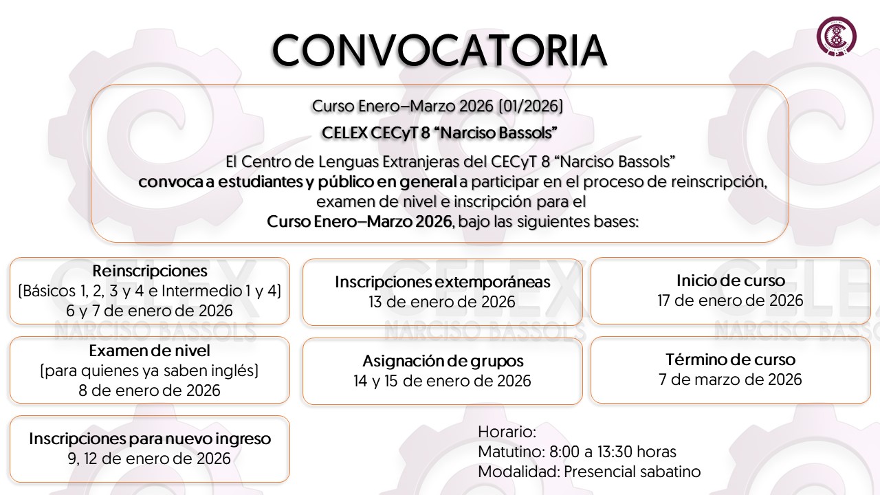 En CELEX Narciso Bassols, somos un espacio dedicado a la enseñanza de inglés abierto tanto a la comunidad del Instituto Politécnico Nacional (IPN) como al público en general.