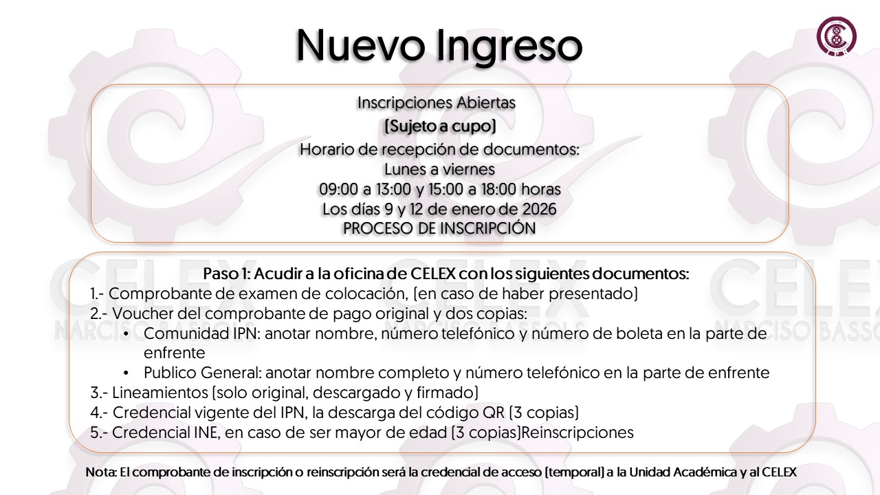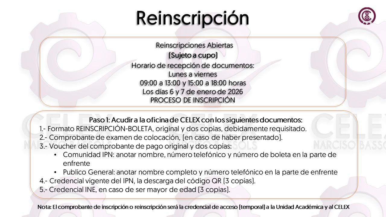 Deberás presentarte el día 17 de enero en las instalaciones a las 07:45 horas para el acceso, portando tu comprobante de inscripción o reinscripción.